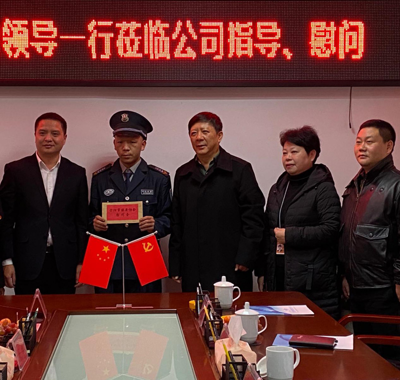 2020年1月17日上午九點(diǎn)十分,貴陽(yáng)市新成立的保安協(xié)會(huì)會(huì)長(zhǎng)劉毅一行到貴州陟翔保安有限公司進(jìn)行指導(dǎo)、慰問(wèn),總公司總經(jīng)理馮波、常務(wù)副總張小慶、黨支部書(shū)記李明澤、保安公司一區(qū)域經(jīng)理劉帆及相關(guān)部門同志陪同。