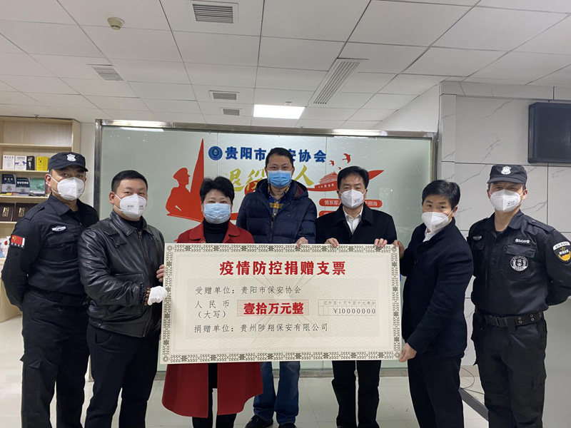 捐贈儀式上,陳春生總經(jīng)理代表貴州陟翔保安有限公司向貴陽市保安協(xié)會捐贈人民幣10萬元,用于支持抗擊新型冠狀病毒感染的肺炎疫情。羅越利副會長代表貴陽市保安協(xié)會接受捐贈并對貴州陟翔保安有限公司愛心之舉表示感謝。她指出,貴州陟翔保安有限公司是一個有社會責(zé)任感的企業(yè),此舉為貴陽市保安行業(yè)樹立了榜樣,帶了個好頭,希望全市保安行業(yè)向貴州陟翔保安有限公司學(xué)習(xí),積極行動起來,奉獻愛心,為打贏這場疫情阻擊戰(zhàn)貢獻力量。