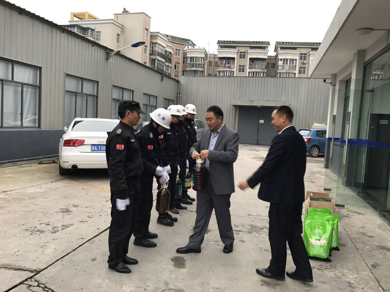 (陟翔集團(tuán)股東代表李鵠為各點(diǎn)保安員送上慰問品)