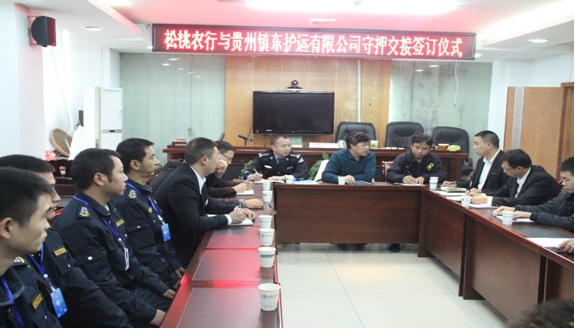 經(jīng)過半年的業(yè)務對接和洽談,銅仁本部于11月16日至20日正式接手德江、石阡、印江、江口、松桃五縣農(nóng)業(yè)銀行守押業(yè)務。銅仁市公安局保安大隊大隊長王世軍、銅仁市農(nóng)行副行長任達輝、銅仁市農(nóng)行保衛(wèi)部經(jīng)理楊猛、銅仁本部總經(jīng)理陳葉、副總經(jīng)理劉興華、劉樹等出席了五縣守押業(yè)務交接儀式。