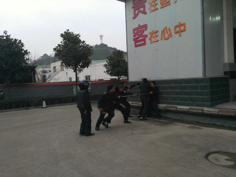 三、按照客戶單位《反恐怖主義法》宣傳教育活動周安排,于2016年12月21日14:00-16:00,由駐車輛段動車所保安隊(duì)開展反恐處突實(shí)作演練,共計26名駐車輛段動車所保安隊(duì)隊(duì)員參加演練,于2016年12月22日9:00-10:00,由駐車輛段、客運(yùn)段保安隊(duì)開展反恐處突實(shí)作演練,共計12名駐車輛段、客運(yùn)段保安隊(duì)隊(duì)員參加演練。本次演練以反恐怖主義法教育、反恐器材使用、反恐團(tuán)隊(duì)配合和應(yīng)對刀斧砍殺實(shí)作演練為主,有效提高了職工反恐應(yīng)急處置能力。