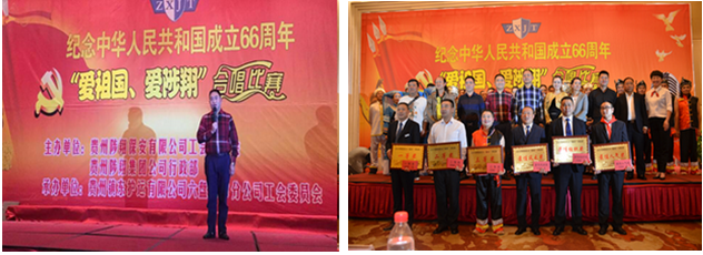 經(jīng)過1個多月的精心準(zhǔn)備,鎮(zhèn)東護(hù)運(yùn)銅仁本部、黔東南州分公司、六盤水市分公司三支代表隊(duì)于 2015年9月29日在六盤水市參加由貴州陟翔集團(tuán)組織的“紀(jì)念中華人民共和國成立66周年暨‘愛祖國、愛陟翔’合唱比賽”。經(jīng)過6支參賽隊(duì)緊張、激烈的角逐,六盤水市分公司榮獲一等獎,黔東南州分公司榮獲最佳風(fēng)采獎,銅仁本部榮獲最佳組織獎。