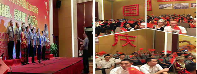 在圓滿完成“9.3”中國人民抗日戰(zhàn)爭暨世界反法西斯戰(zhàn)爭勝利70周年紀(jì)念活動期間各項(xiàng)工作之后,總公司上下繼而開展“9月質(zhì)量月”、中秋國慶“雙節(jié)”檢查慰問、“紅歌”合唱比賽等“三個活動”,提高企業(yè)服務(wù)質(zhì)量,凝聚員工士氣,宏揚(yáng)鎮(zhèn)東正能量、愛國熱忱和社會責(zé)任感,以實(shí)際行動向建國66周年獻(xiàn)禮!