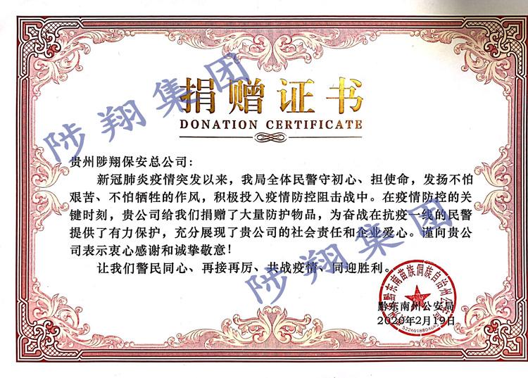 捐贈(zèng)證書
