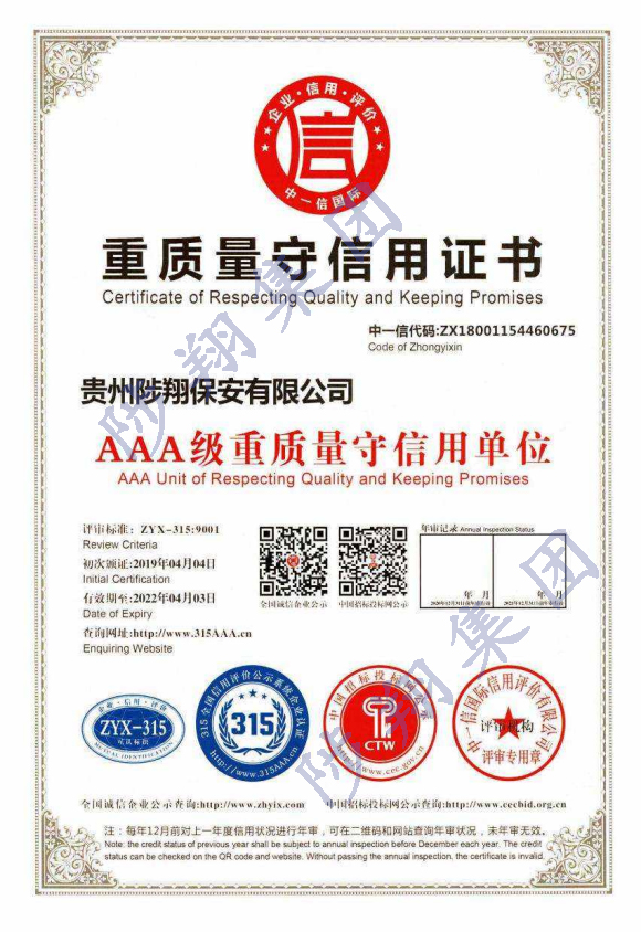 網(wǎng)站首頁(yè) > 證書(shū)展示 > 重質(zhì)量守信用證書(shū)
